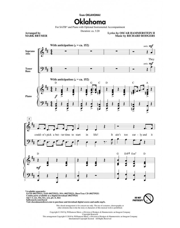 Mark Brymer Oklahoma from Oklahoma! Choeur CD Broadway Choral TV, Film, Comédie musicale 2018