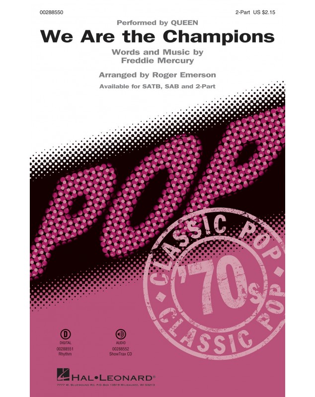 Freddie Mercury Roger Emerson We Are the Champions 2-Part Choir Conducteur chorale Pop Choral Series Hymnes et chorals 2019