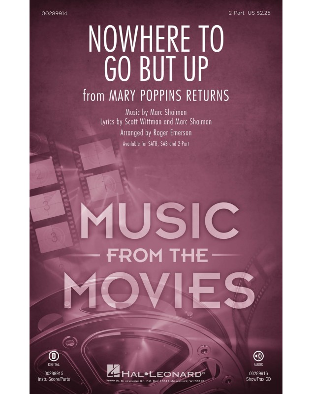 Marc Shaiman_Scott Wittman Roger Emerson Nowhere to Go But Up from Mary Poppins Returns 2-Part Choir Conducteur chorale Disney Choral TV, Film, Comédie musicale 2019