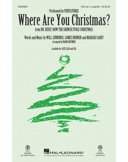 James Horner_Mariah Carey_Will Jennings Mark Brymer Where Are You Christmas? from Dr. Seuss' How the Grinch Stole Christmas SSA opt. a Cappella Conducteur chorale Pop Choral Series TV, Film, Comédie musicale 2019