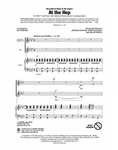 Arthur Singer_David White_John Madara Ed Lojeski At the Hop SSA Conducteur chorale Pop Choral Series 26