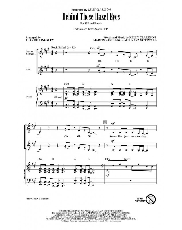 Kelly Clarkson_Lukasz Gottwald_Martin Sandberg Alan Billingsley Behind These Hazel Eyes Choeur CD Pop Choral Series 49