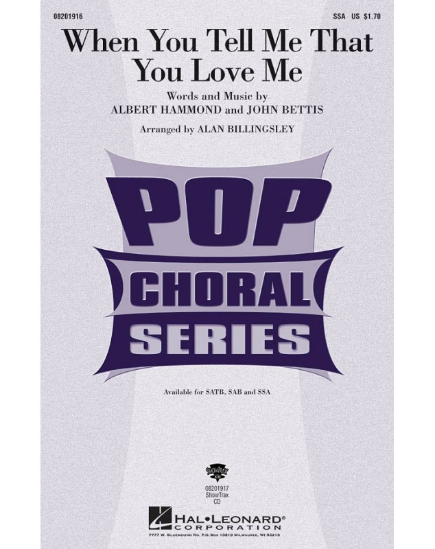 Alan Billingsley When You Tell Me that You Love Me SSA Conducteur chorale Pop Choral Series 18