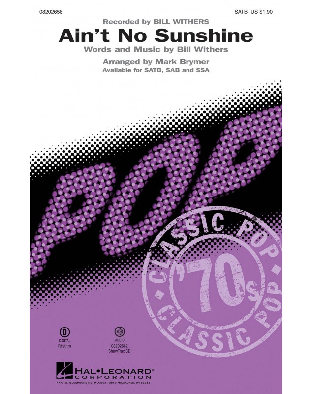 Bill Withers Mark Brymer Ain't no Sunshine SATB and Piano Conducteur chorale Pop Choral Series English 18