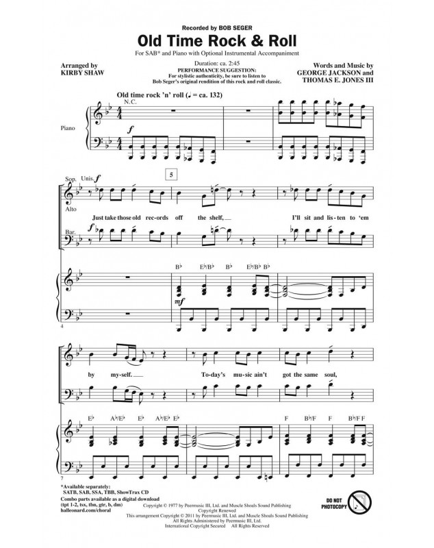 Kirby Shaw Old Time Rock & Roll SAB Conducteur chorale Pop Choral Series TV, Film, Comédie musicale 26