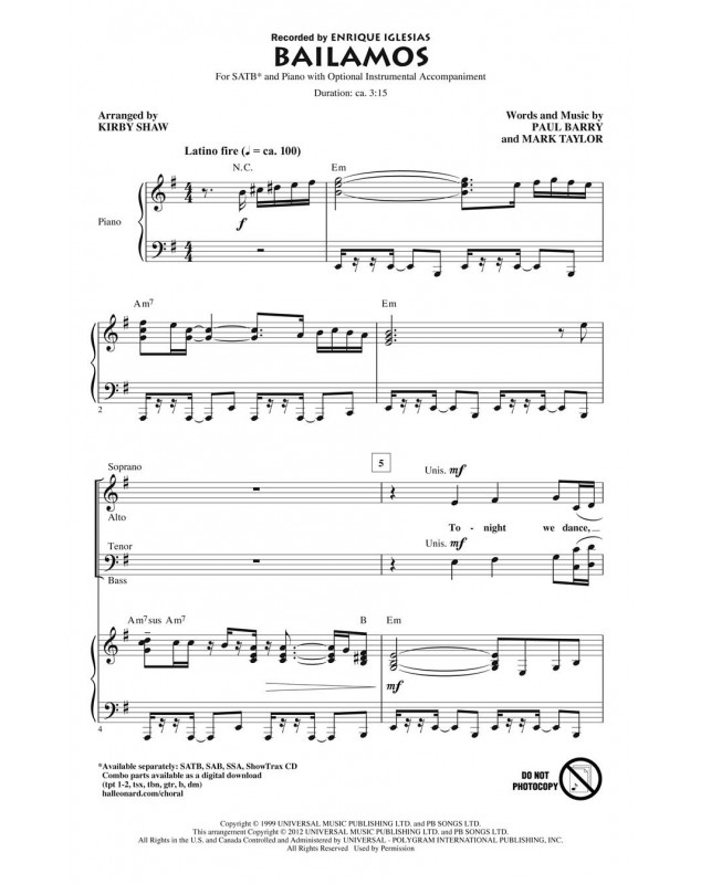 Mark Taylor_Paul Barry Kirby Shaw Bailamos Choeur CD Pop Choral Series 43