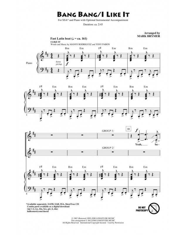 Jimmy Sabater_Joe Cuba_Manny Rodriguez_Tony Pabon Mark Brymer Bang Bang/I Like It SSA Conducteur chorale Pop Choral Series 35