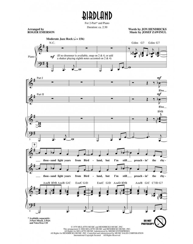 Jon Hendricks_Josef Zawinul Roger Emerson Birdland Discovery Level 3 2-Part Choir