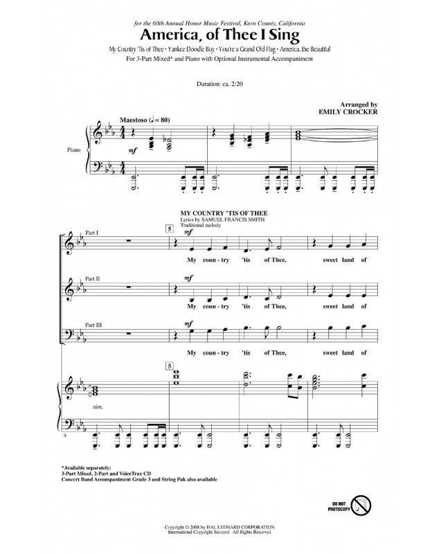 Emily Crocker America, of Thee I Sing (Medley) Choeur