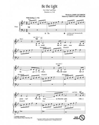 Cristi Cary Miller_John Jacobson Be the Light Discovery Level 2 2-Part Choir