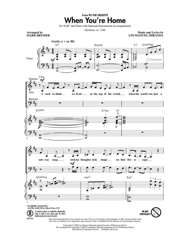 Lin-Manuel Miranda Mark Brymer When You're Home from In the Heights SAB Conducteur chorale Broadway Choral Hymnes et chorals 26
