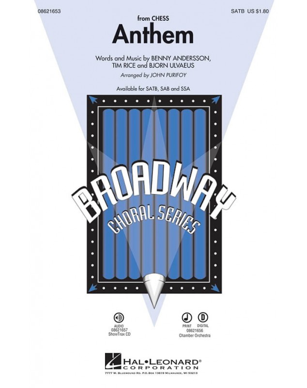 John Purifoy Anthem (from Chess) SATB and Piano Conducteur chorale Broadway Choral TV, Film, Comédie musicale English 18