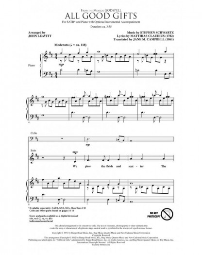 Stephen Schwartz John Leavitt All Good Gifts from Godspell Choeur