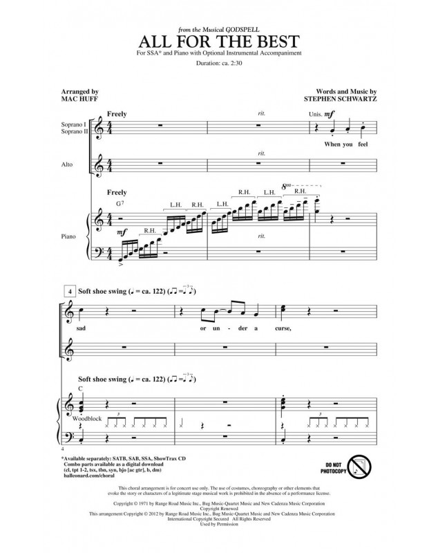 Stephen Schwartz Mac Huff All for the Best from Godspell SSA