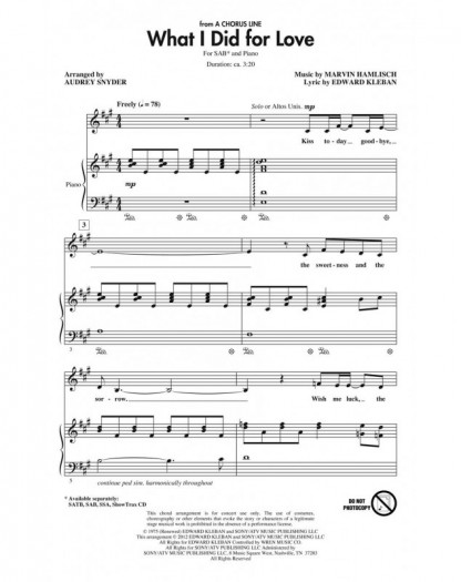 Marvin Hamlisch Audrey Snyder What I Did for Love from A Chorus Line SAB