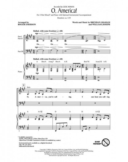 Brendan Graham Roger Emerson O, America! 3-Part Choir Conducteur chorale Festival Choral Ballade 26