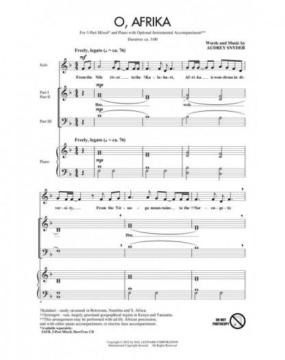Audrey Snyder O, Afrika 3-Part Choir Conducteur chorale Contemporary Choral 26