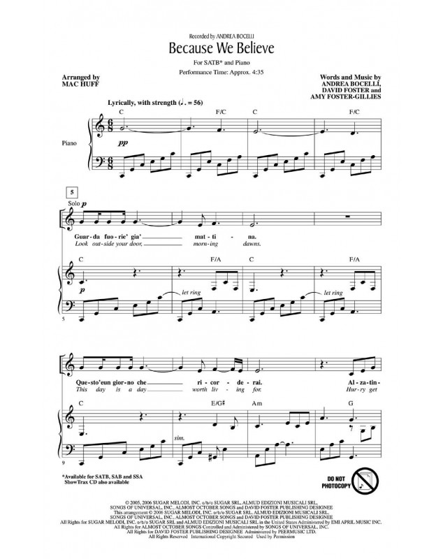 Amy Foster-Gillies_Andrea Bocelli_David Foster Mac Huff Because We Believe Choeur CD Contemporary Choral 46