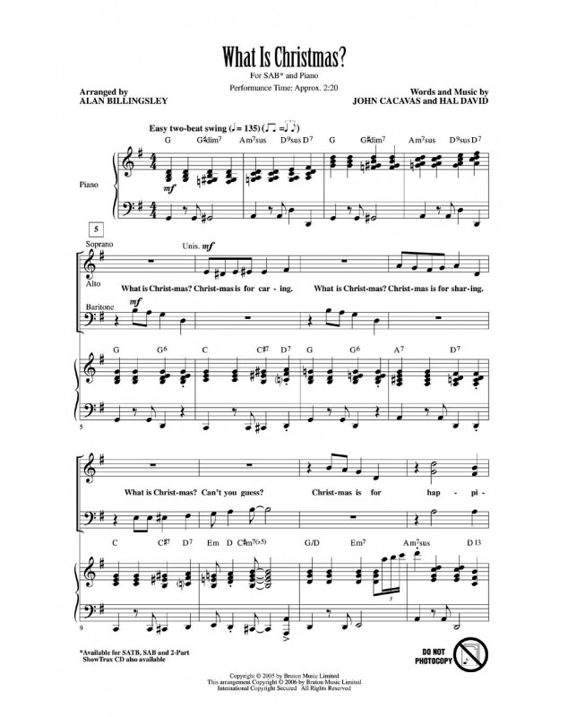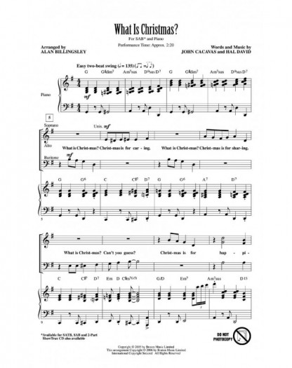 Hal David_John Cacavas Alan Billingsley What Is Christmas SAB