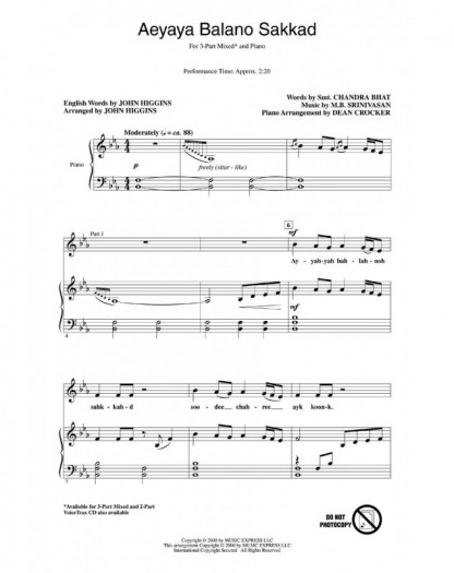 John Higgins Aeyaya Balano Sakkad 3-Part Choir