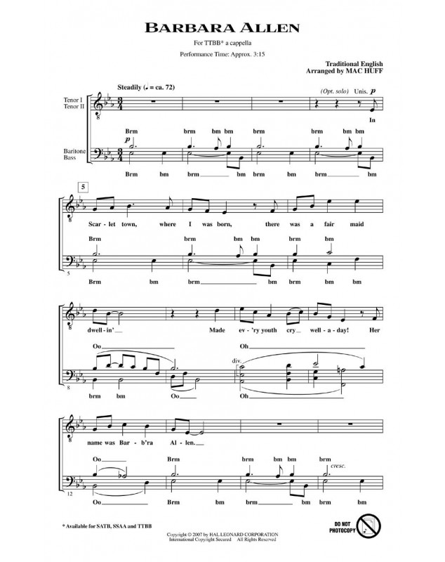 Traditional Mac Huff Barbara Allen TTBB a Cappella
