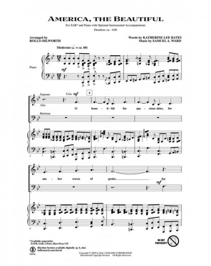 Rollo Dilworth America, the Beautiful SAB Conducteur chorale Choral 26