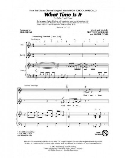 Matthew Gerrard_Robbie Nevil Ed Lojeski What time is it (from High School Mus.2) SA and Piano Conducteur chorale Disney Choral TV, Film, Comédie musicale English 32