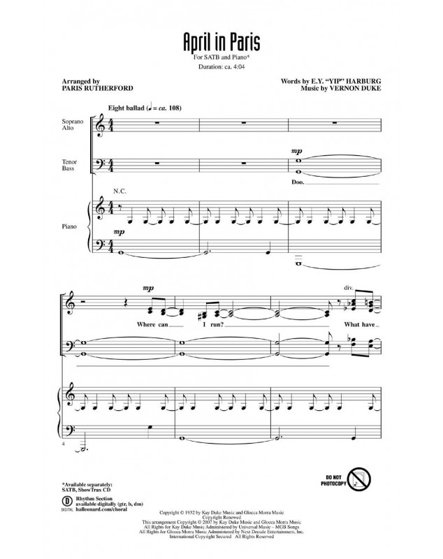 Vernon Duke Paris Rutherford April in Paris Choeur