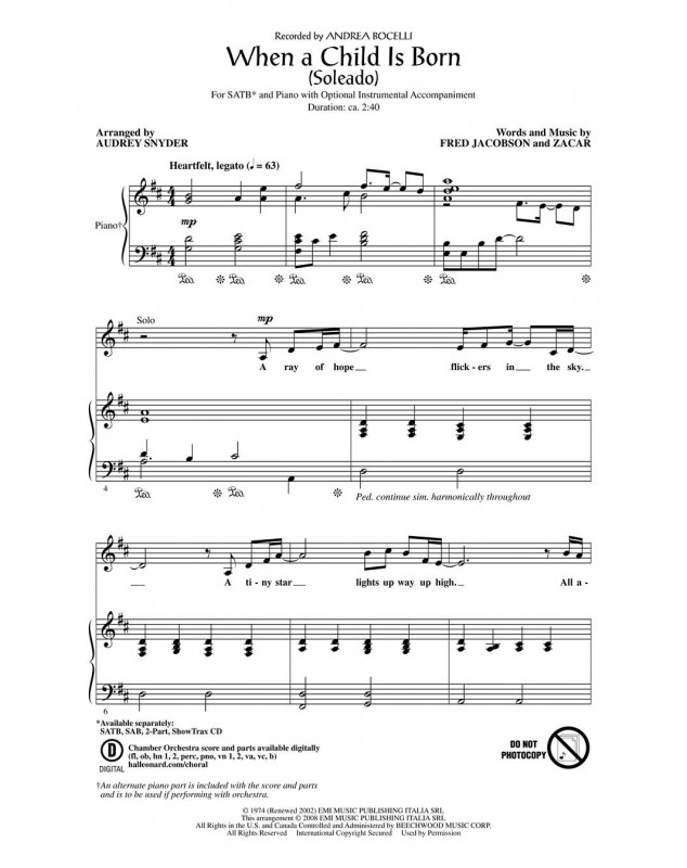 Audrey Snyder When a Child Is Born Soleado Chamber Orchestra Set de partitions Sacred Christmas Choral 239