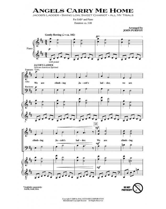 John Purifoy Angels Carry Me Home Medley SAB Conducteur chorale Choral 18