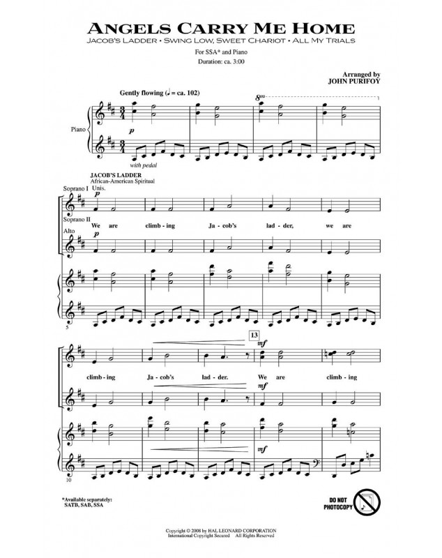 John Purifoy Angels Carry Me Home Medley SSA Conducteur chorale Choral 18