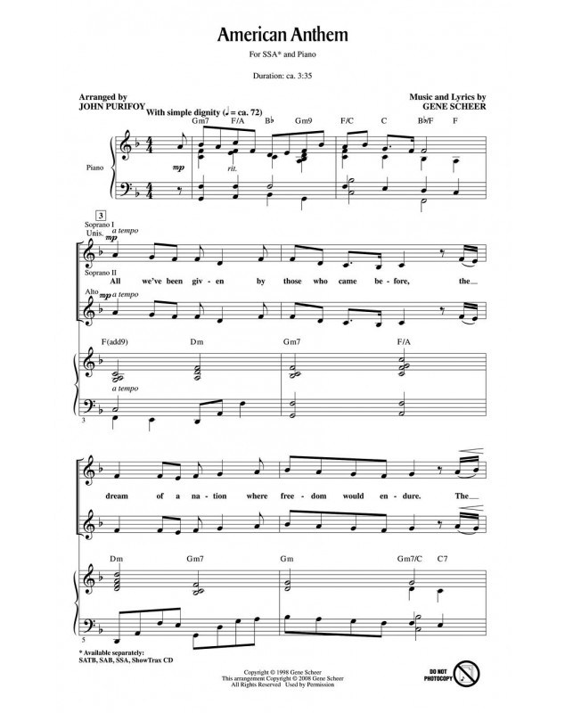 Gene Scheer John Purifoy American Anthem SSA Conducteur chorale Choral 26