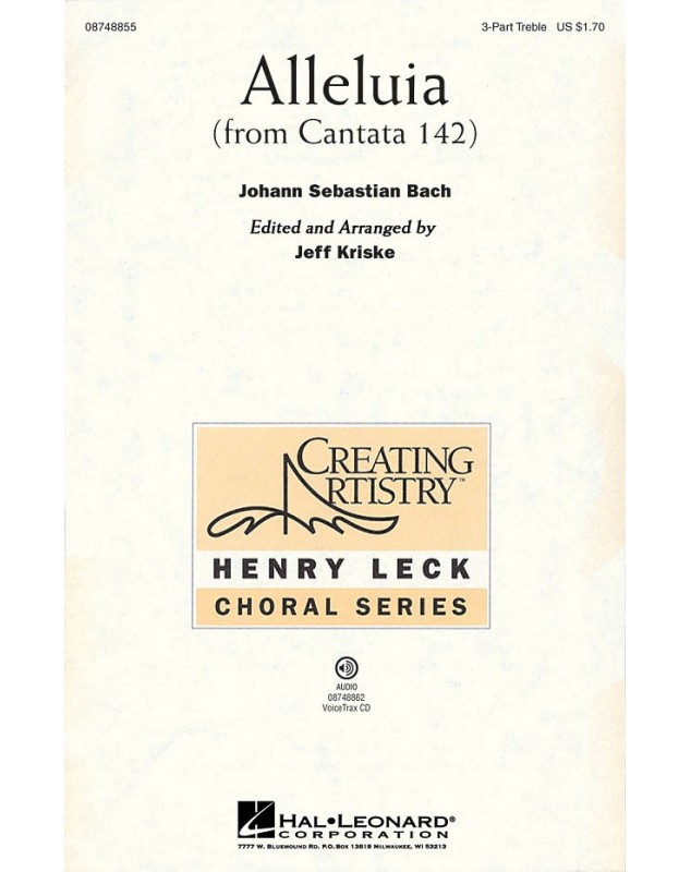 Johann Sebastian Bach Jeff Kriske Jeff Kriske Alleluia from Cantata 142 3-Part Choir Conducteur chorale Henry Leck Creating Artistry Classique 18