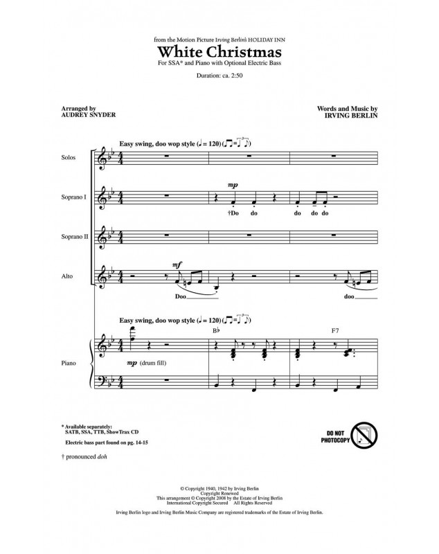 Irving Berlin Audrey Snyder White Christmas SSA Conducteur chorale Secular Christmas Choral TV, Film, Comédie musicale 35
