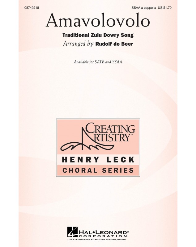 Rudolf de Beer Henry Leck Amavolovolo Traditional Zulu Dowry Song SSAA Conducteur chorale Henry Leck Creating Artistry 18