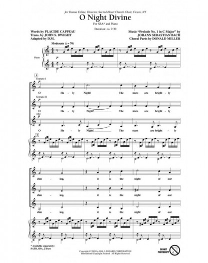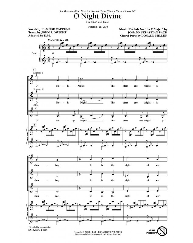 Johann Sebastian Bach Donald Miller O Night Divine SSA and Piano