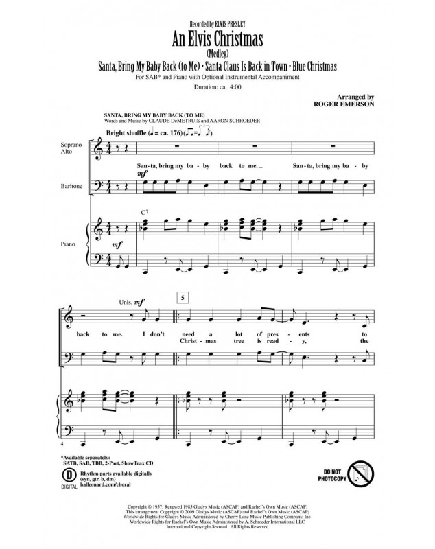 Roger Emerson An Elvis Christmas SAB Conducteur chorale Secular Christmas Choral 26