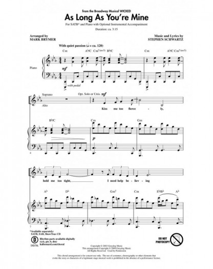 Stephen Schwartz Mark Brymer As Long as You're Mine from Wicked Choeur CD Broadway Choral Pédagogie 54
