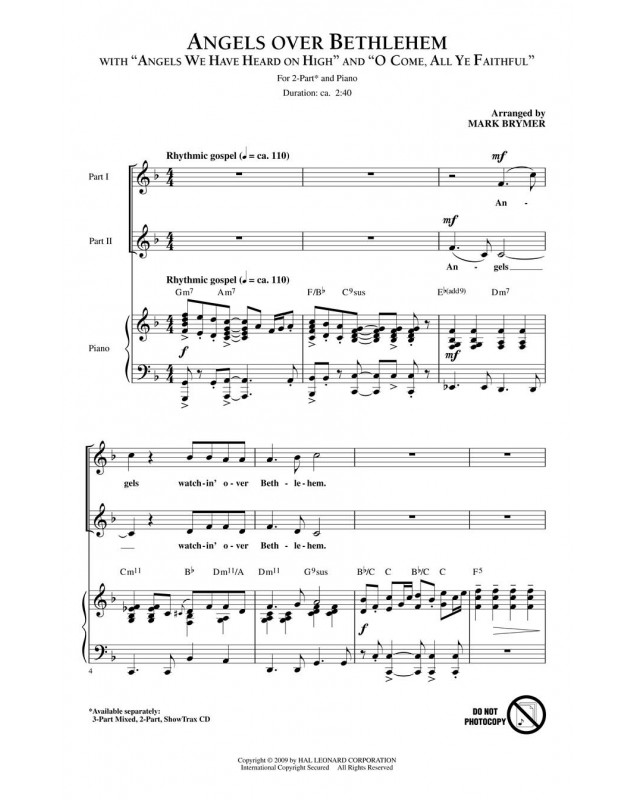 Mark Brymer Angels Over Bethlehem 2-Part Choir and Piano Conducteur chorale Sacred Christmas Choral Hymnes et chorals 18