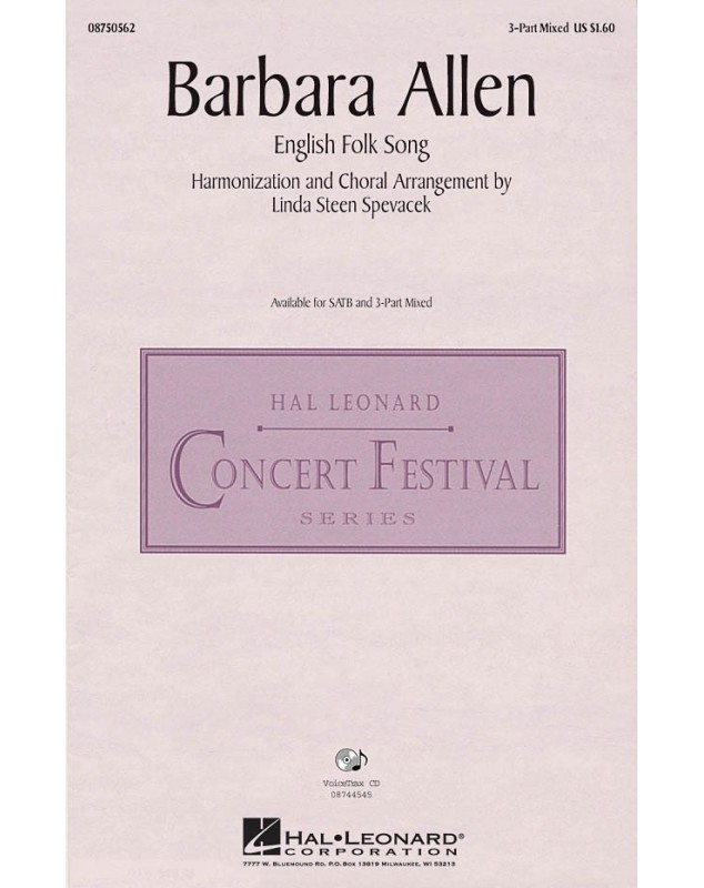 Linda Spevacek Barbara Allen 3-Part Choir Conducteur chorale Choral 18