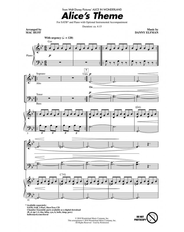 Danny Elfman Mac Huff Alice's Theme from Disney's Alice in Wonderland Choeur