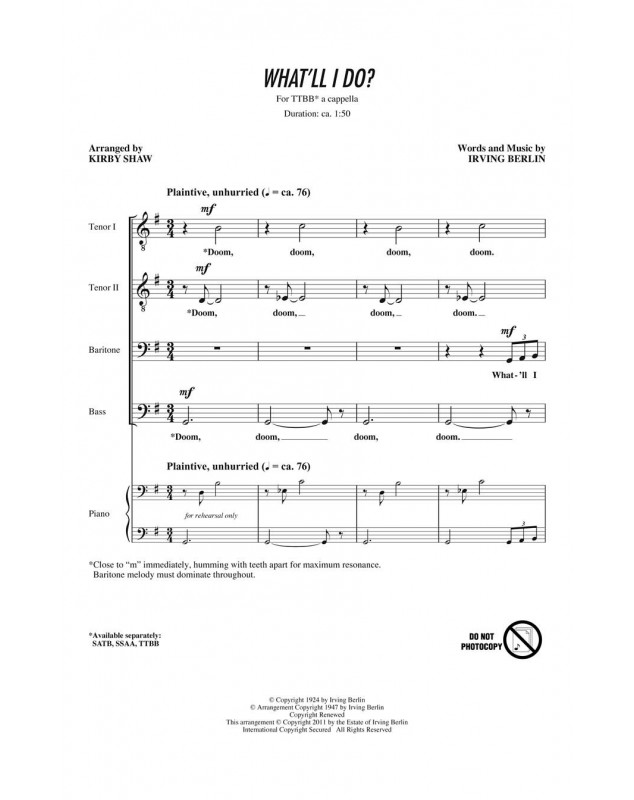 Irving Berlin Kirby Shaw What'll I Do? TTBB a Cappella