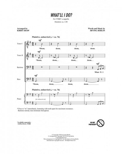 Irving Berlin Kirby Shaw What'll I Do? TTBB a Cappella Conducteur chorale Choral 18