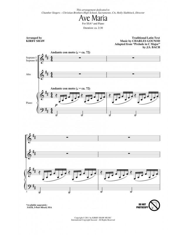 Charles Gounod_Johann Sebastian Bach Kirby Shaw Ave Maria SSA