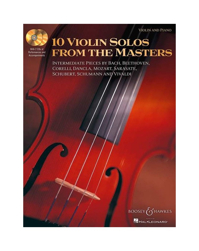 10 Violin Solos from the Masters Interm. Pieces by Bach, Beethoven, Corelli, Dancla, Mozart, Sarasate, Schubert, Schumann,Vivaldi Violon et Piano Recueil + 2 CDs Classique