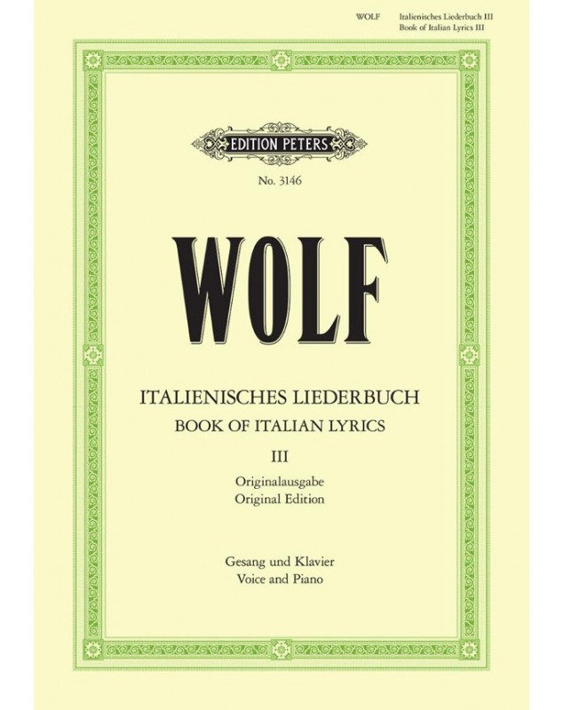 Hugo Wolf Italian Lyrics: 46 Songs Vol.3 High or Medium Voice and Piano Recueil 0 EP3146
