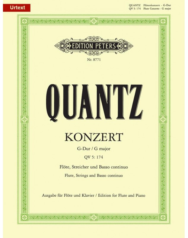 Johann Joachim Quantz Flute Concerto in G Major QV5:174 Flûte Traversière et Piano Recueil Œuvre solo et Orchestre 185 EP8771