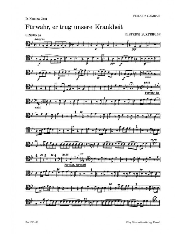 Fürwahr, er trug unsere Krankheit BuxWV31 Viola da Gamba Partition