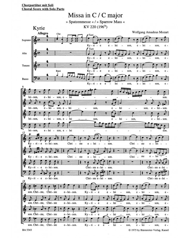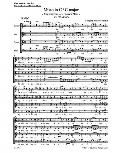 Wolfgang Amadeus Mozart Walter Senn Missa Sparrow Mass SATB Conducteur chorale Messe Latin