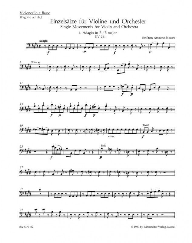 Wolfgang Amadeus Mozart Christoph-Hellmut Mahling Einzelsatze Violin and Orchestra Partition